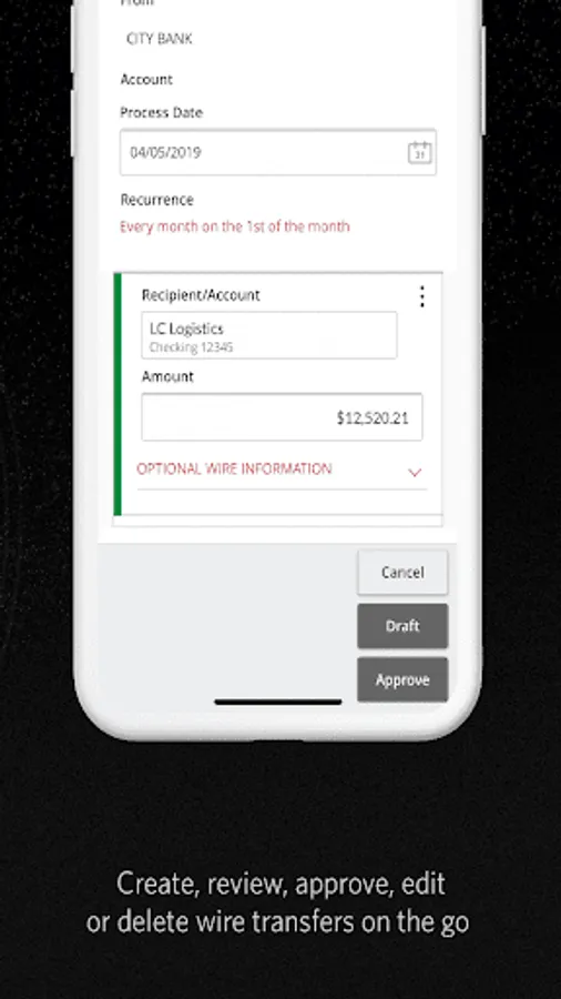 • Gain secondary approval on wire transfers and ACH transactions
