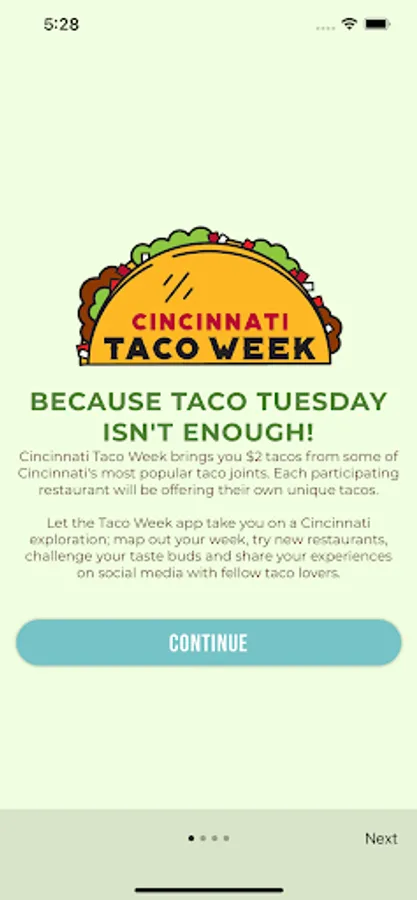 Let the Taco Week app take you on a Cincinnati exploration; map out your week, try new restaurants, challenge your taste buds and share your experiences on social media with fellow taco lovers.