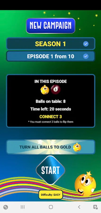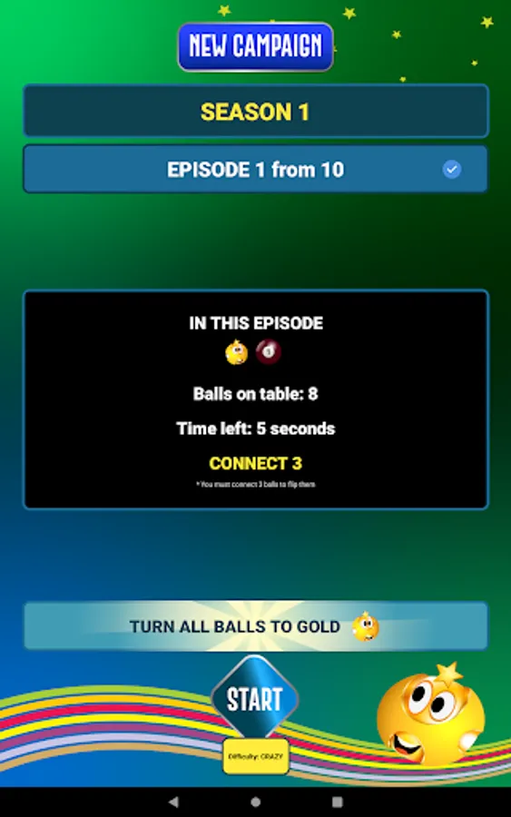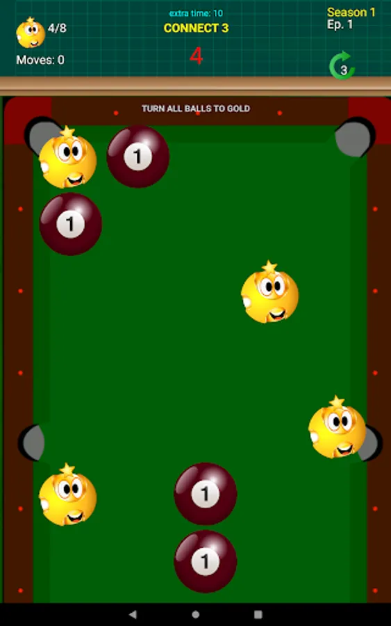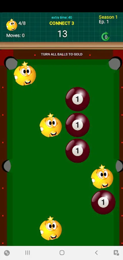 The purpose of the game is to turn all balls that lie on the table to gold balls.
