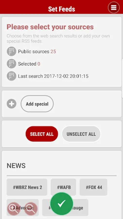 Our app has a Live mode reading option. In Live mode, we will group all news titles from all the recommended feeds that you add and you may read titles as they are published by the sources in one big flow. Even more, the Live mode groups titles by topics.