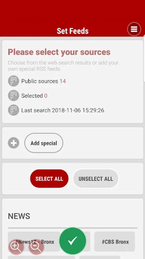 Only In The Bronx has a Live mode reading option. In Live mode, we will group all news titles from all the recommended feeds that you add and you may read titles as they are published by the sources in one big flow. Even more, the Live mode groups titles by topics.