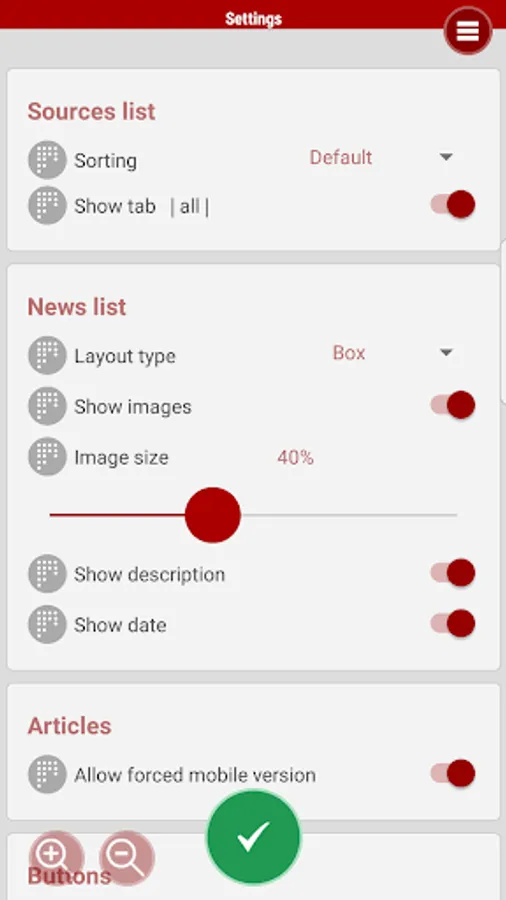 In List mode, all sources you add are listed vertically and you may browse news by source.