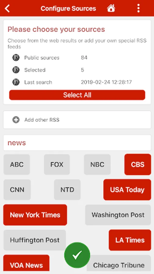 UNLIMITED SOURCES. The application, free and fast, basically, searches the web for available local RSS feeds for any of the news categories, topics, region you select. You may also add any other RSS feed you want.