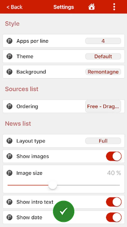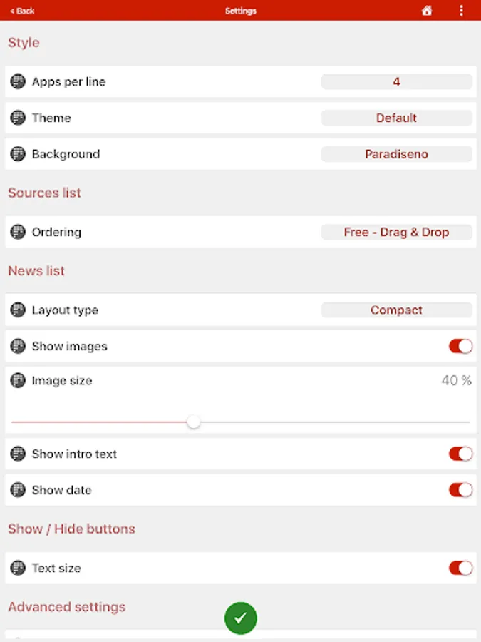 FLEXIBLE DESIGN. You may choose your Home Screen background just as you do for your smartphone. This way, you have a more relaxed experience when browsing for news. You may also choose from different themes. You may reorder the news apps or news sources by drag and drop.