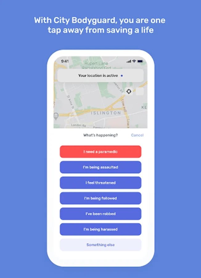 With City Bodyguard, you are one tap away from saving a life. We are a groundbreaking paramedic and security platform with a one-tap user experience - which in turn initiates an unprecedented, 4-minute response. We step in where others have failed.