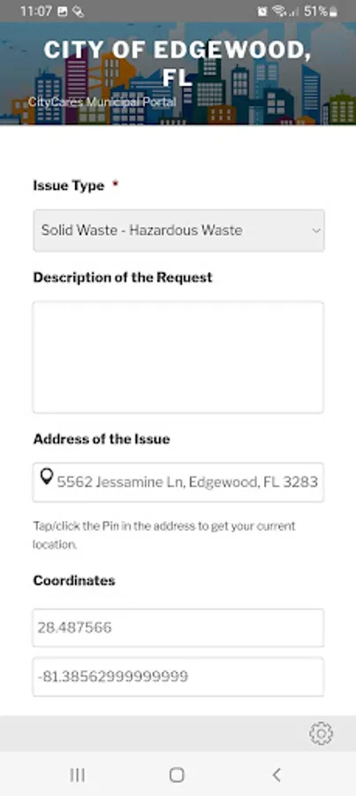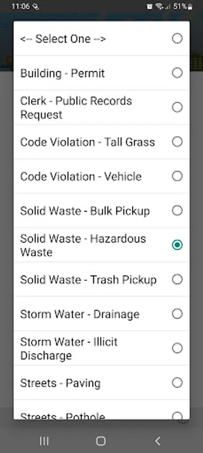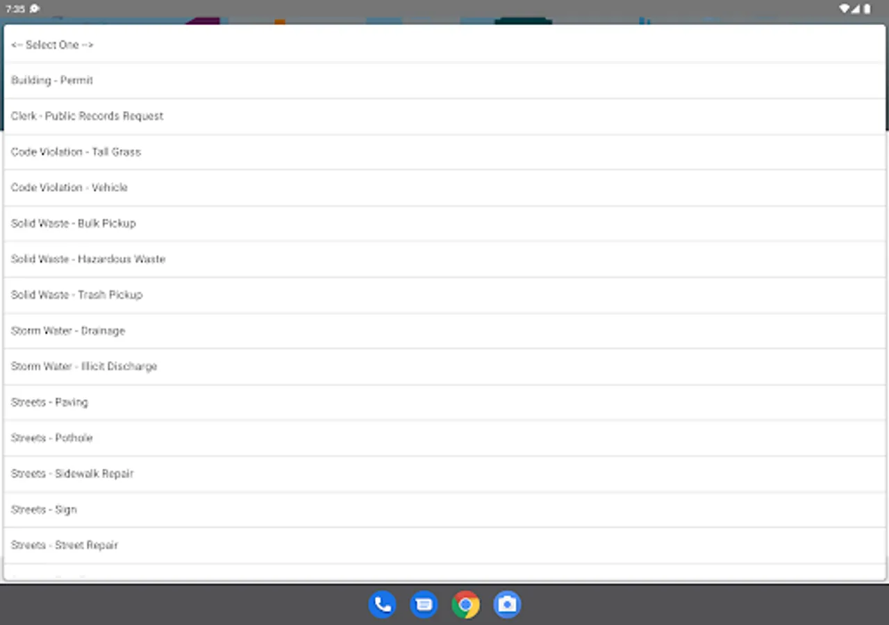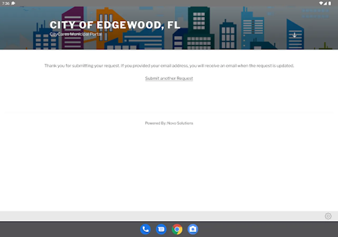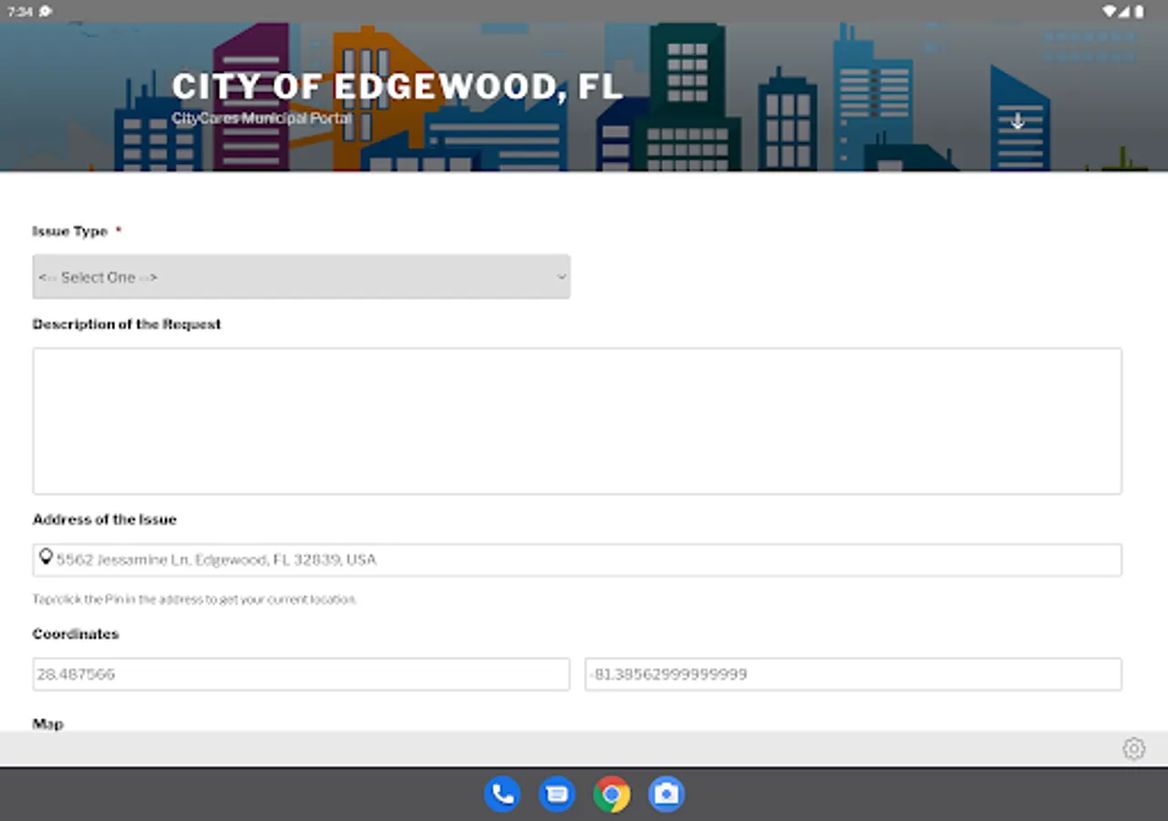 The CityCares app provides an easy way for citizens to submit requests to their local government. Examples include: Road or Sidewalk repair, Traffic Lights out, etc. To use the app, the municipality must have a subscription to the Novo Solutions Citizen Request Management system. Each municipality using the system decides what types of requests can be handled through the application.