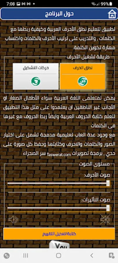 App helps Non-native speakers of Arabic in knowing the warmest and also testing the knowledge of letters and words