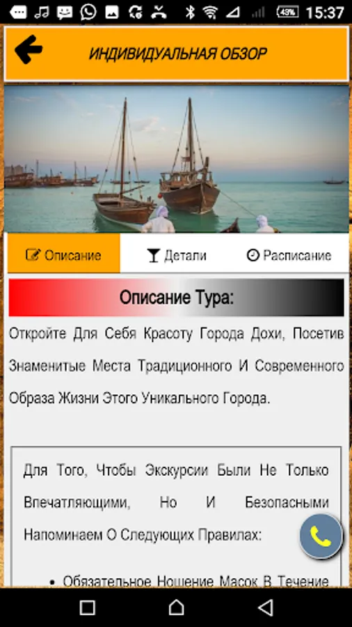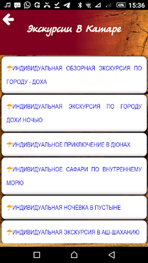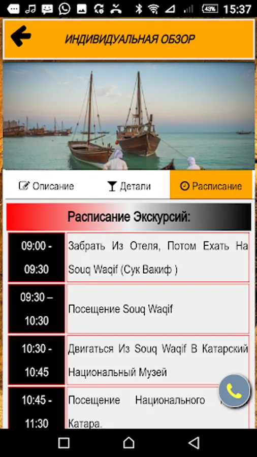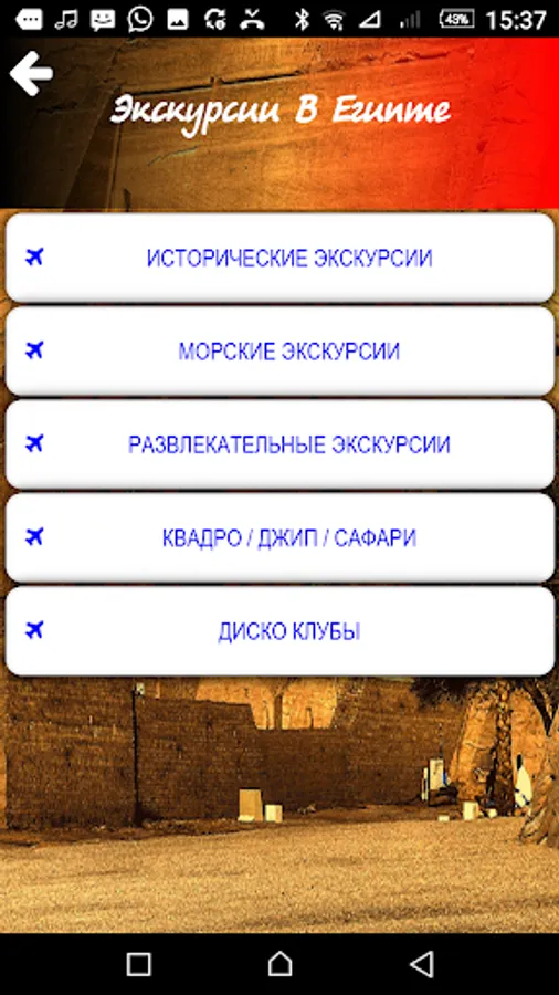 The application includes the most popular excursions in Egypt and also in Qatar.