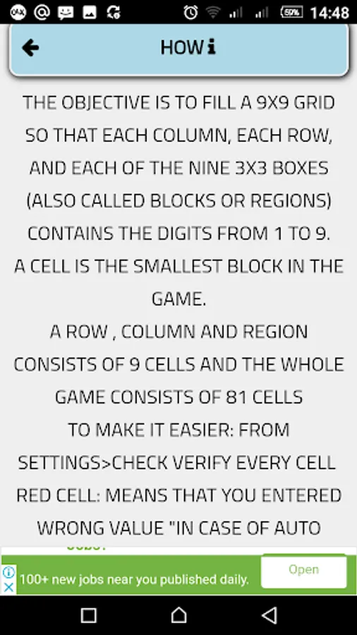 A ROW , COLUMN AND REGION CONSISTS OF 9 CELLS AND THE WHOLE GAME CONSISTS OF 81 CELLS