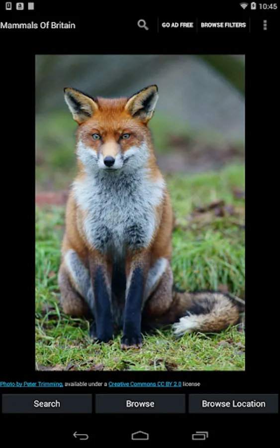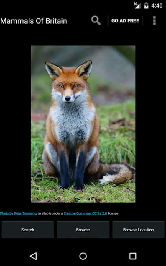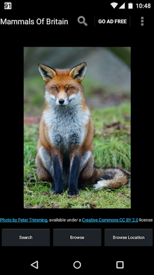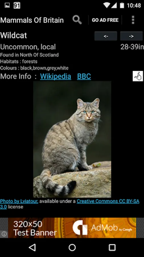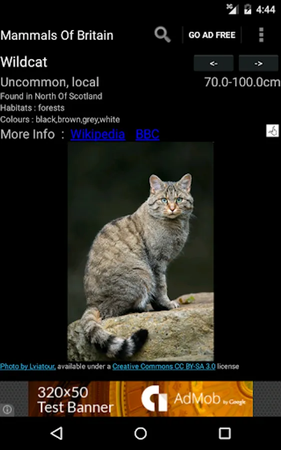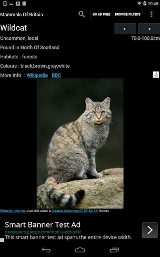 Select from mammal list to see basic mammal details such as colour, size, habitat and picture. You also have the option to see full mammal details on line.