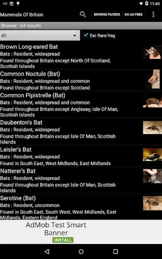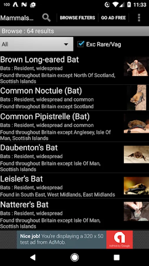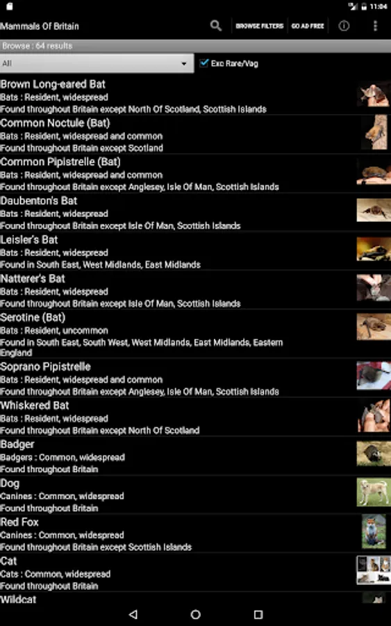 Browse or search all mammals or select group to view. You can exclude or include rare mammals.