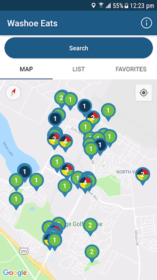 Washoe Eats allows you to search detailed inspection results for all restaurants, bars, delis, mobile food trucks and other retail food establishments located in Washoe County, Nevada (Reno, Sparks, Incline Village). The data is updated daily and allows you to search restaurants closest to you, or search by name or location. Know before you go! With Washoe Eats you can easily make informed decisions on where to eat.
