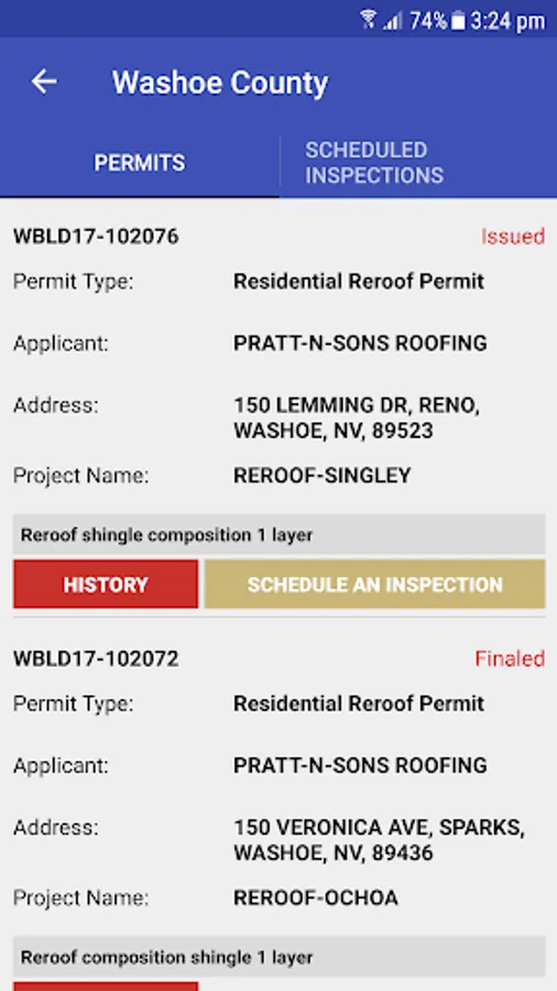 - View list of all your active Washoe permits in one place