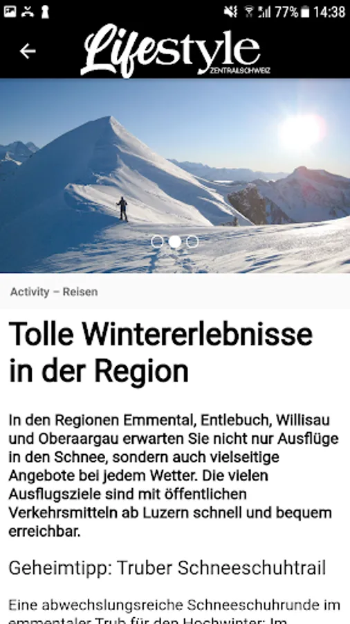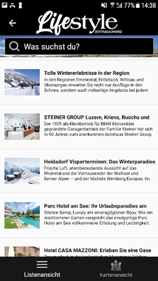 Mit dieser App «Lifestyle Magazin Zentralschweiz für Insider» leben Sie schöner: Reportagen, Interviews und Service rund um die Lifestyle-Themen Auto, Reisen, Mode, Gastronomie, Luxus, Fitness und Wohnen. Viel Inspiration und Information über aktuelle Trends – alles in einer App! Durchsuchen und entdecken Sie die zahlreichen Rubriken und Listen. Im «Lifestyle Magazin Zentralschweiz für Insider» erhalten Sie viele wertvolle Lifestyle Tipps. Und vieles mehr rund um die Lifestyle-Themen Auto, Reisen, Mode, Gastronomie, Luxus, Fitness und Wohnen. «Lifestyle Magazin Zentralschweiz für Insider» ist der Trend- und Styleguide für modebewusste, smarte Frauen und Männer: hochwertig, mobil und unique. Sie finden uns online unter www.lifestyle-zentralschweiz.ch.