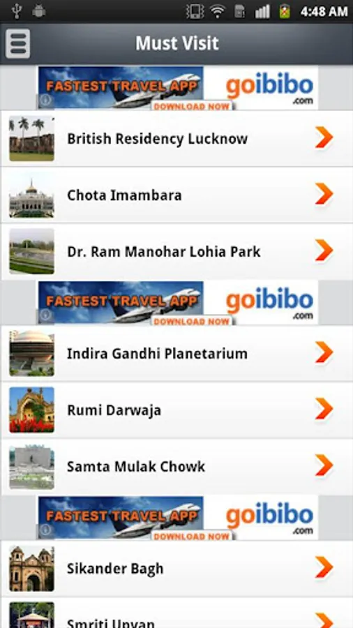 Must Visit: Lucknow offers pleasant and exciting surroundings such as Rumi darwaja, Shah Najaf Imambara, Smriti Upvan, Samta Mulak Chowk, Dr. Ram Manohar Lohia Park, Indira Gandhi Planetarium, Bada Imambara, British Residency Lucknow, Chota Imambara, Husainabad Clock Tower, Sikander Bagh. Get each places' full details from within the app.
