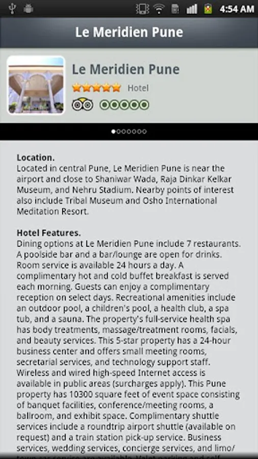 Hotels: Stay at the most luxurious hotels like Radisson Hotel Pune Kharadi, Vivanta by Taj - Blue Diamond, Sun N sand, Le Meridien, The Corinthians Boutique Hotel and many more. The app provides detailed info about hotels' ratings, location details, cuisine served, contact info, etc.