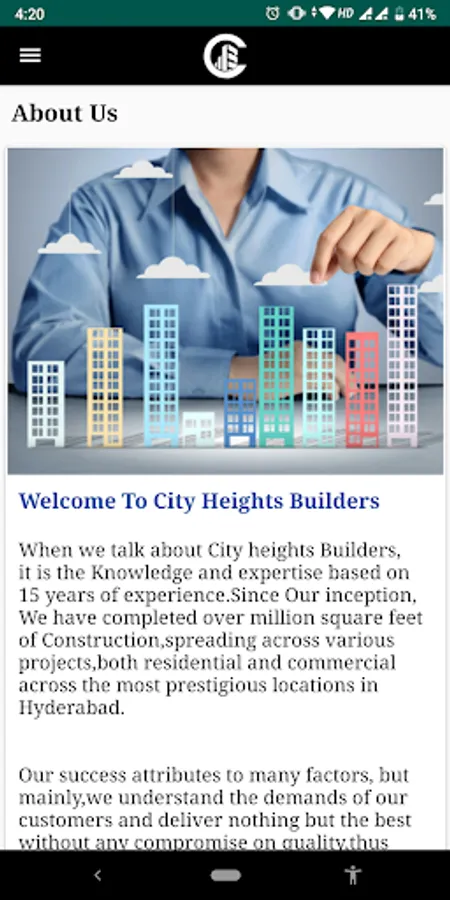 When we talk about City heights Builders, it is the Knowledge and expertise based on 15 years of experience.Since Our inception, We have completed over million square feet of Construction,spreading across various projects,both residential and commercial across the most prestigious locations in Hyderabad.