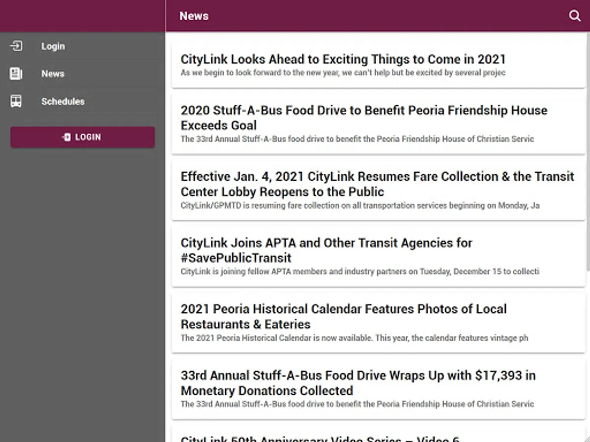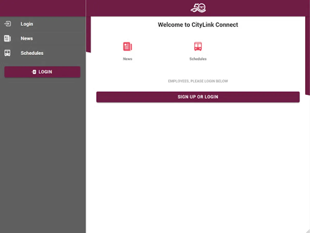 CityLink Connect App gives the public access to bus schedules and routes, as well as recent news at CityLink. Employees also have access to private information.