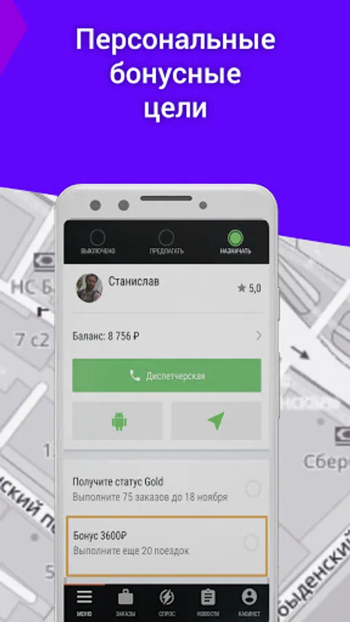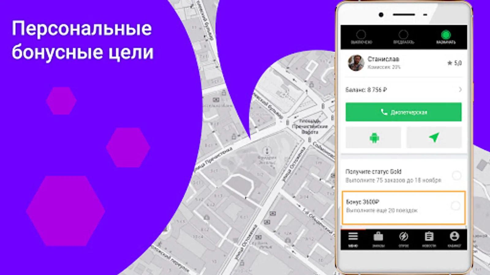 Personal bonus goals for the number of trips are a good reason to connect to Citymobil taxis. This information can be seen directly in the application on the main menu.
