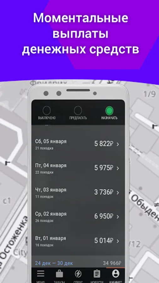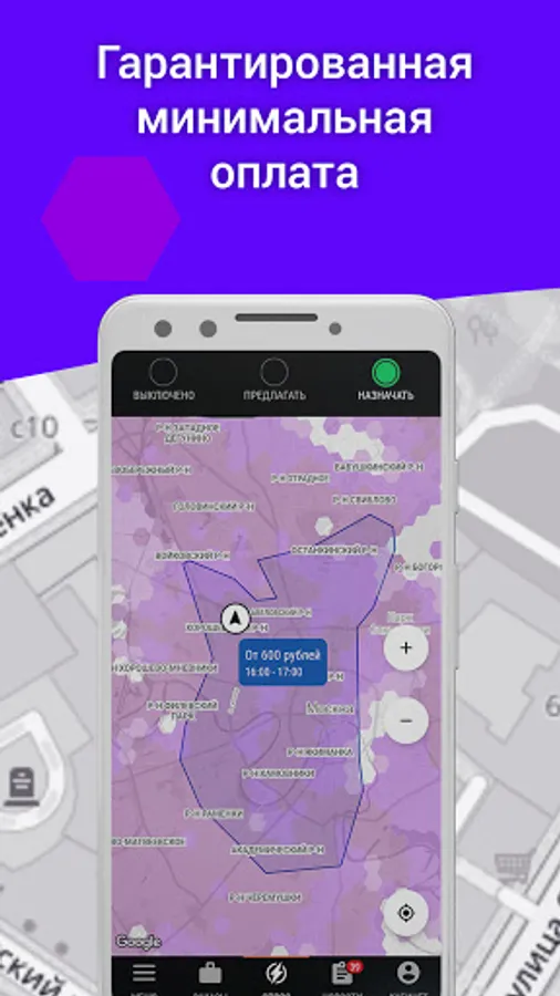 For all drivers, regardless of their current status, we guarantee a decent minimum wage anywhere in the city, and in areas with a higher minimum wage, this figure will be increased several times. Such zones can be seen on the map in the City-Mobile application, they will be highlighted.
