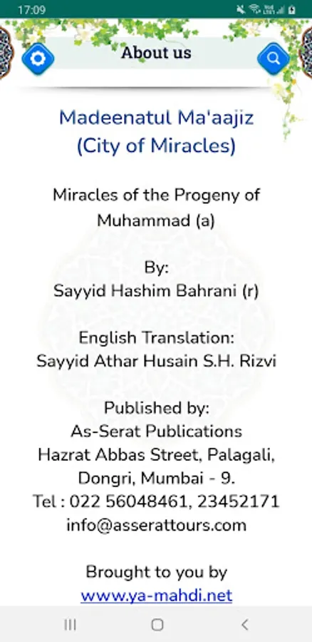 The original book comprises of eight volumes, which was rendered in English in four volumes. The learned author dedicated his life to compile books elucidating the miracles and teachings of Aale Muhammad (a). It is learnt from the table of contents of his numerous books that love for Ahle Bayt (a) was encompassed his very being and the endless waves of this unending seas of love used to remove darkness from the minds of the enemies of Ahle Bayt (a) and illuminate them.