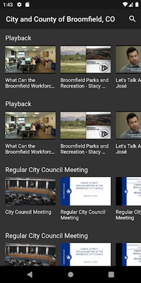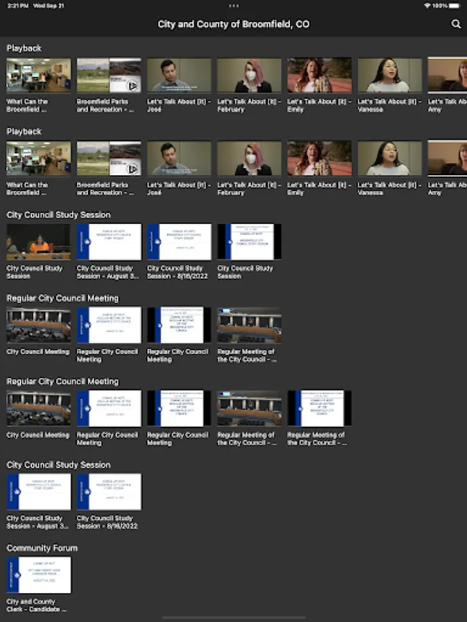 You are now able to access live Broomfield City Council meetings. When those are not happening, you can stream the current playing video anytime, anywhere on your mobile device. You no longer have to be at a computer monitor to watch council meetings or stream other broadcasts on Channel 8. On a nice day, you can watch while walking around your neighborhood or relaxing in one of Broomfield’s many parks or open spaces. City and County of Broomfield, Colorado.