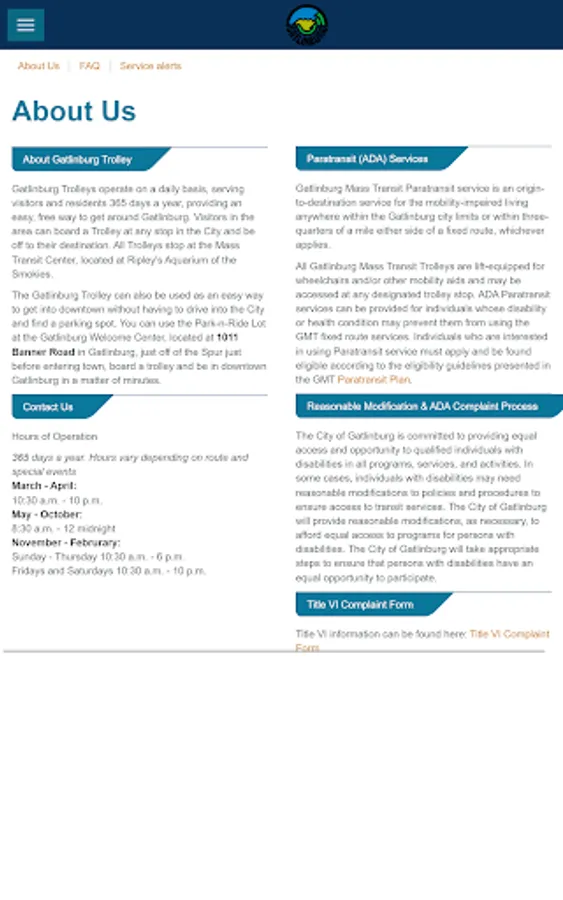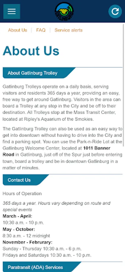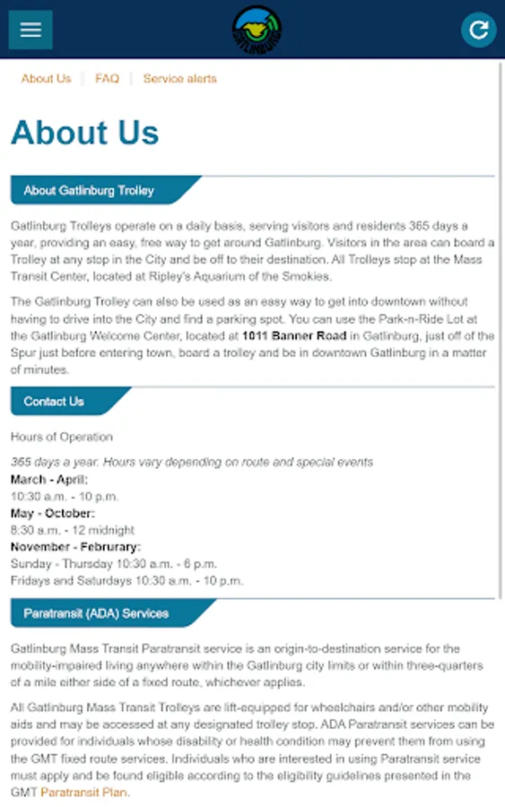 Find the nearest Trolley stop to your current location (requires GPS/location services to be enabled on your device), view Trolley ETAs and current locations. Check Trolley schedules and save your favorite routes and stops. Gatlinburg Trolleys, City of Gatlinburg.