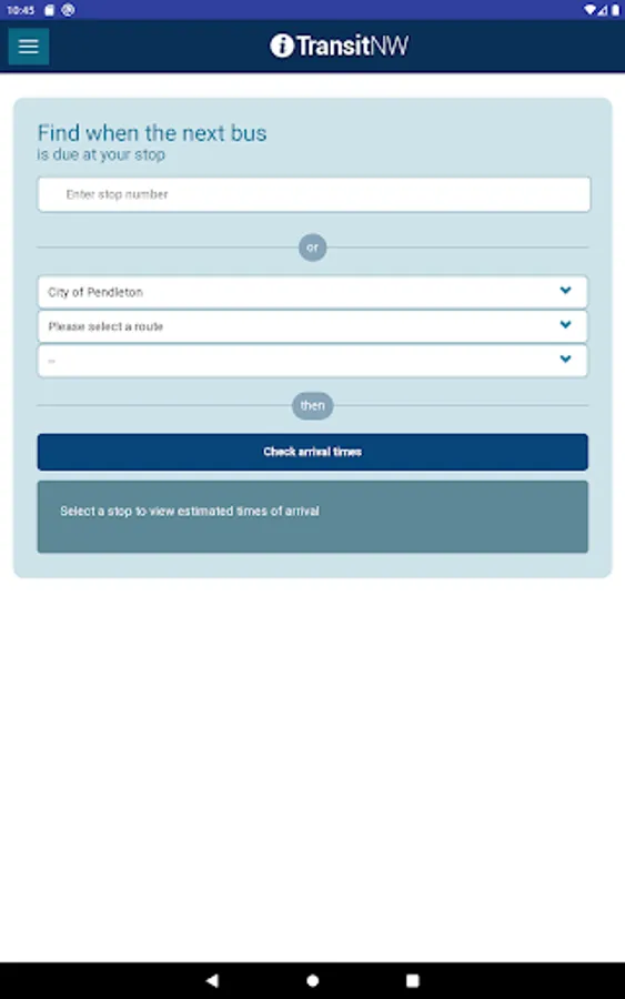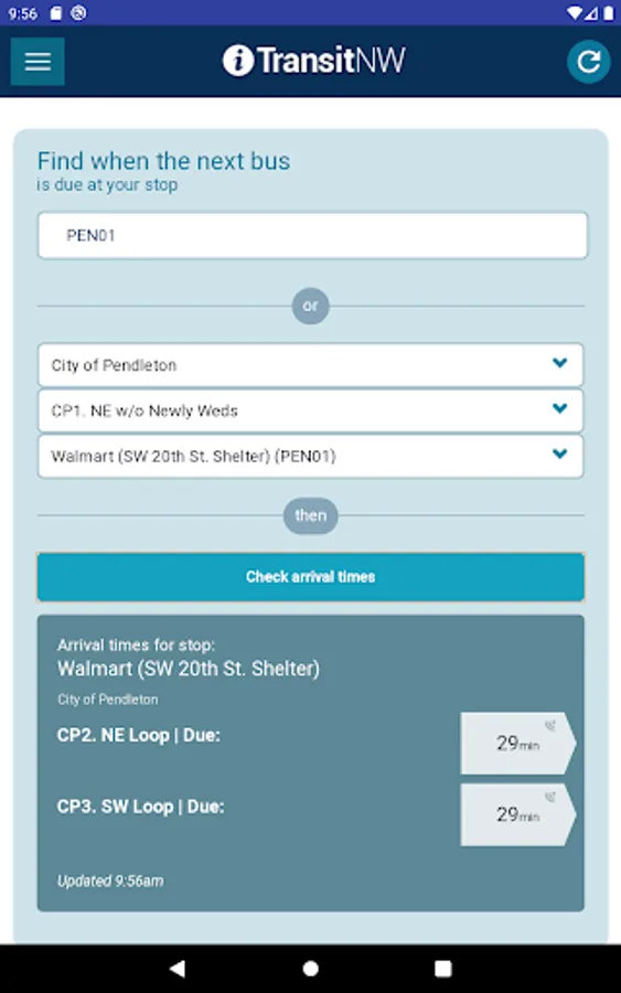 Find the nearest bus stop to your current location (requires GPS/location services to be enabled on your device), view an ETA for your bus and view its current position. Save your favorite stops and routes and access bus schedules. City of Pendleton bus service.