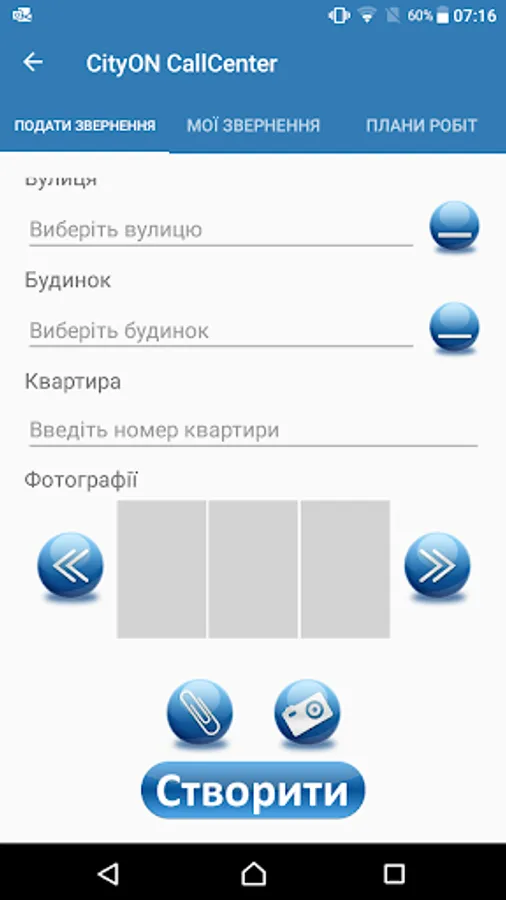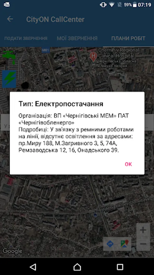The application allows you to create and track the status of citizens' appeals to the Chernihiv call center