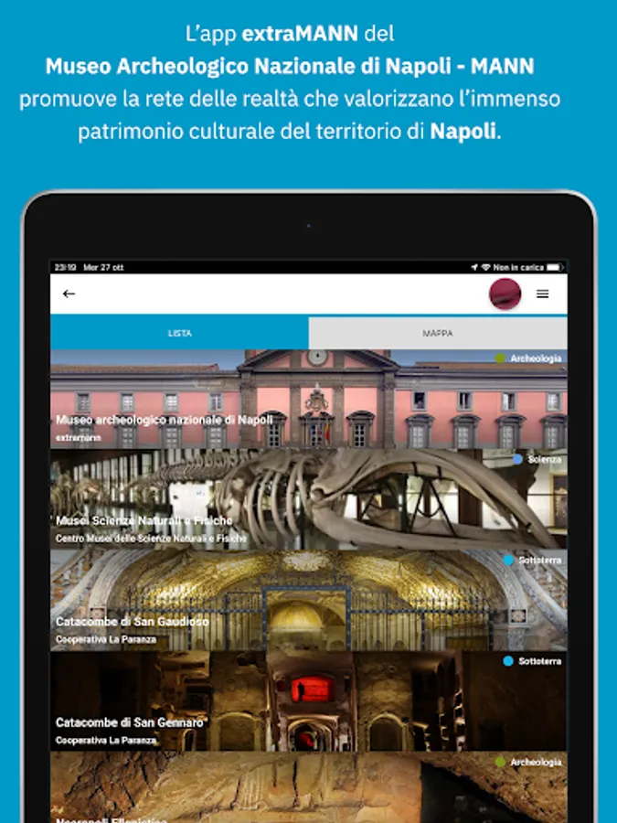 The extraMANN app of the National Archaeological Museum of Naples - MANN promotes the network of realities that enhance the immense cultural heritage of the Naples area.