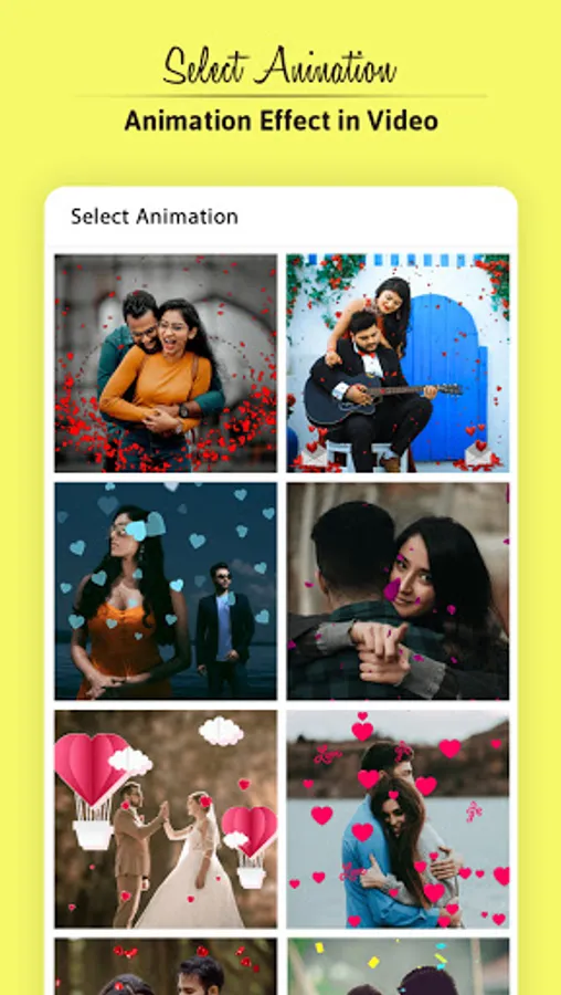 Wedding Anniversary photo effect Video Maker is wonderful video maker tool to create animated photo effect with heart effect gif theme, love effect gif theme, diamond effect gif theme, bubbles effect gif theme, autumn effect gif theme and many more…