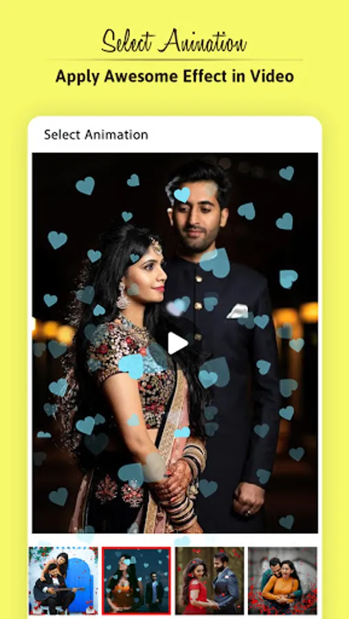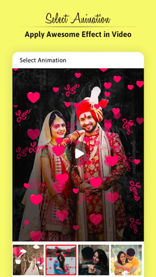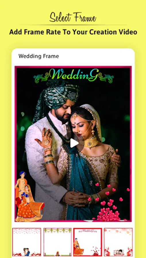 Wedding Video Maker & Editor App is Easiest way to create photo slideshow from your selected photos or video with song. Few steps to create wedding photo to video or select video to add gif effect - selecting Photos or video, apply gif effect, Adding Filters, Text & Music, Instantly create Your wedding video.
