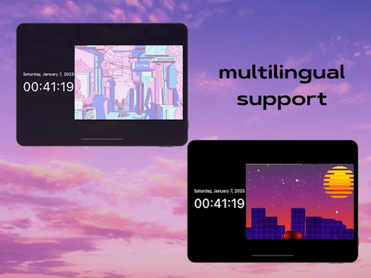 Thus, a digital clock application that displays 80's citypop style videos is an application that not only displays the time, but also allows you to enjoy the animation.