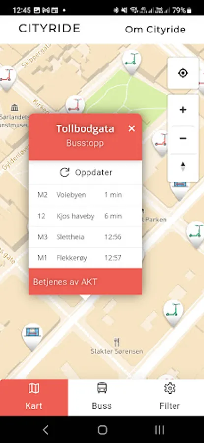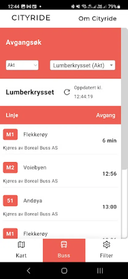 See real-time departures from bus stops for AKT, ATB, Brakar, Ruter and NFK.