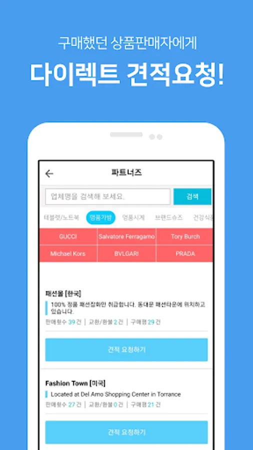 상품판매자(파트너즈)에게 다이렉트 견적을 요청할 수 있습니다.