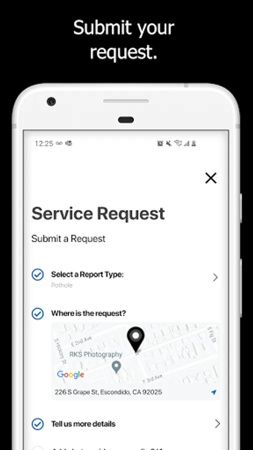 Report It! is a real time mobile civic engagement platform for Escondido residents. Report It! provides a free and simple way for people to use their smartphone to report community problems such as grafitti or potholes. A picture is worth a thousand words and Report It! makes it a snap. Download it today!