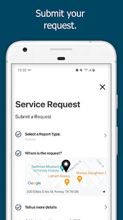 MyForney is the official mobile app for the City of Forney. This app provides a connection between the Forney community and its residents. Want to report a pothole, broken streetlight, or a city code violation? MyForney makes reporting issues around town easier than ever. This app allows you to snap a photo and then uses GPS to identify your location. The requests are then reported to the appropriate city department for response. The MyForney app also links residents and visitors to city news and other important information.