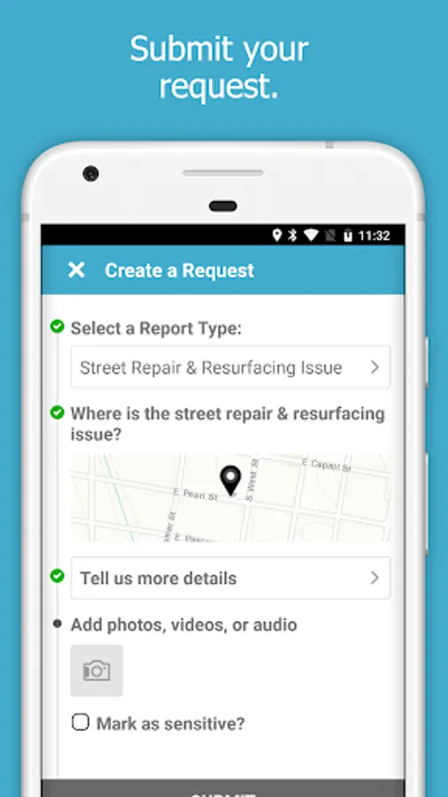 The Jackson 311mobile application offers a convenient way to report City-related issues such as potholes, water leaks, overgrown lots, obstructed drains and more. Attach your photos or videos for more detailed reporting.