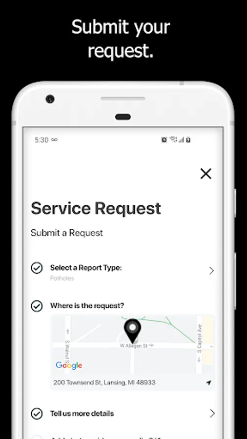 Lansing Connect is a real time, free, civic engagement platform that allows the public to conveniently communicate non-emergency civic issues directly to city government from their smart devices. Download the Lansing Connect app to report community issues or problems; you can even submit photos and videos. When you use Lansing Connect, your report is submitted to the appropriate department and you can track its progress. Help us make the City of Lansing, MI a better place to live, work and play.