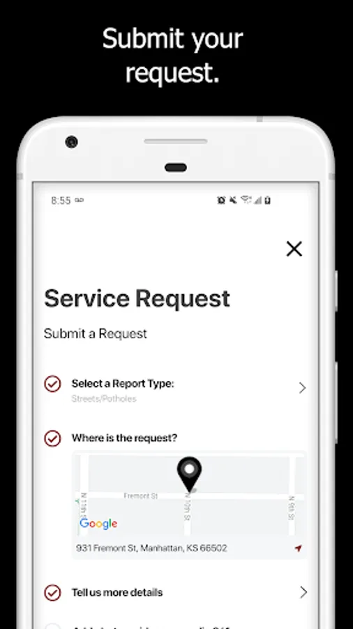 This free app is a convenient way for residents and visitors to report non-emergency issues to the City of Manhattan. In just a few clicks, you can report an issue from anywhere in the city, at any time of day. Simply open a report regarding your issue, take a photo and submit. City staff will address the issue as quickly as possible — and you will be able to track the report through to its completion. Help us make Manhattan a better place!