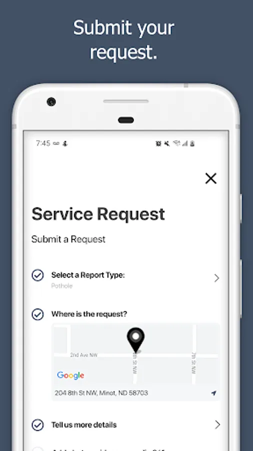 myMinot allows you to own your City services by reporting road conditions, requesting bulk trash collection, or requesting any of the hundreds of services the City of Minot provides.