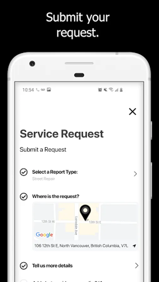 City Fix is a mobile application for reporting things that need to be fixed in the City of North Vancouver such as potholes, graffiti and street lights. Issues can be reported in real time with GPS technology to assist accurate reporting. All you need to do is take photo of the issue and complete a short form and send your report. A City Staff person will be assigned to the issue and you will be able to track the progress with the CityFix mobile app