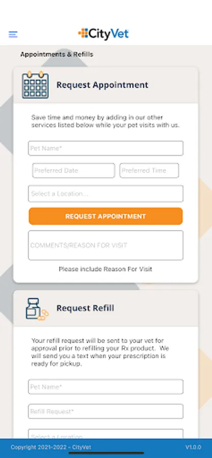 At CityVet, we believe in happy people and healthy pets. With our app clients have access to their pet's health records, appointment and prescription refill requests, the ability to track CityVet Pet Points, and more!