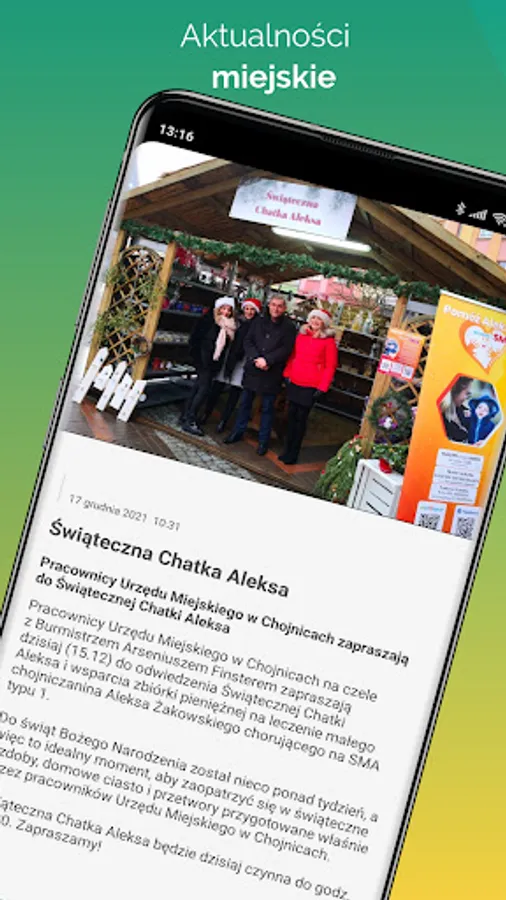 Use the! Go Chojnice app to learn about and communicate with different institutions. Read the latest news and announcements. Get to know your local government and communicate with councilors and city authorities. Help the city to develop - report property defects and take part in public consultations and opinion polls.