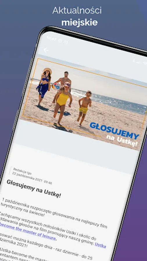 Use the! Go Ustka app to learn about and communicate with different institutions. Read the latest news and announcements. Get to know your local government and communicate with councilors and city authorities. Help the city to develop - report property defects and take part in public consultations and opinion polls.