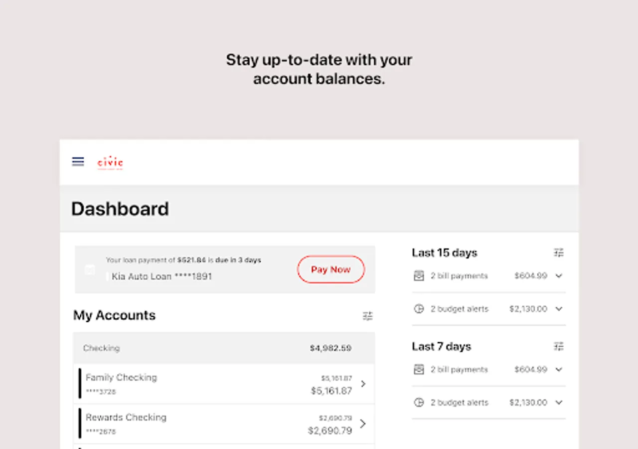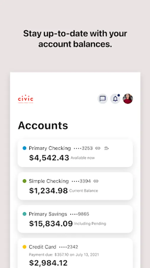 Manage your accounts anywhere at anytime with the app from Civic Federal Credit Union.