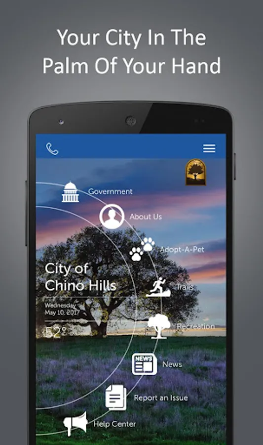 Become a civic citizen and engage with your city like never before by downloading the official app of City of Chino Hills. With features like City Hall, Places, News, Calendar, Business Directory and Issue Reporting, you'll find it easier than ever to stay connected with your city with just a few taps on your mobile device.