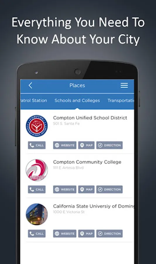 City Hall and Places sections allow you to have all the important contact and destination information in your city with the click of a button. Learn about your city's history, demographics and elected officials. Find parks, facilities and points-of-interest along with information, phone numbers, maps and directions.