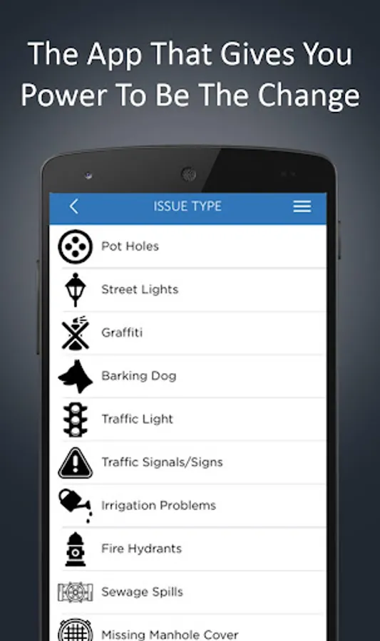 Use the Issue Reporting section to report graffiti, potholes and other issues directly to the correct city department right from your phone. The issues are tracked from the initial report to resolution in the "My Reports" section and you will receive push notifications as your report progresses.