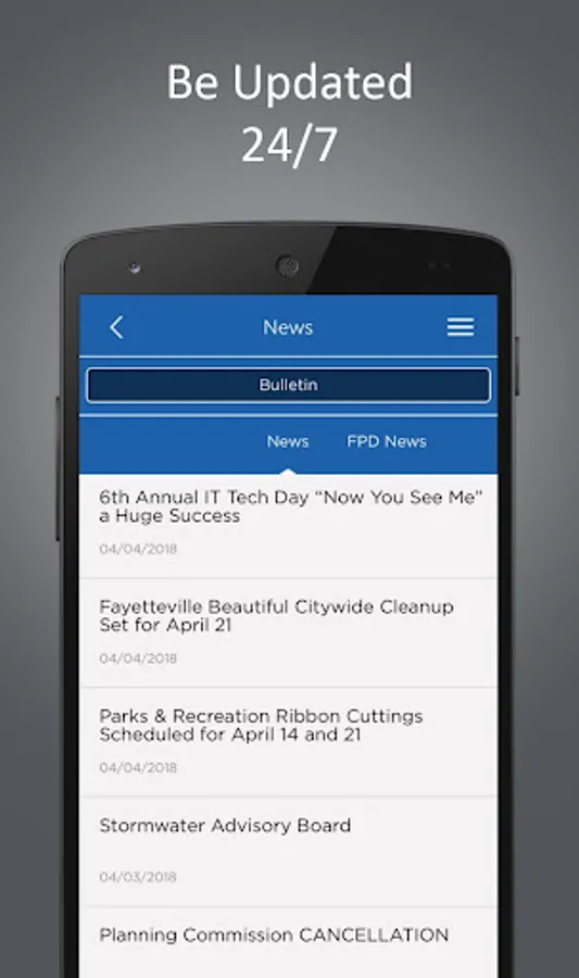 Become a civic citizen and engage with your city like never before by downloading the official app for Fayetteville, NC. With features like Government, Recreation & Attractions, News, Calendar, and Utilities you'll find it easier than ever to stay connected with your city with just a few taps on your mobile device.